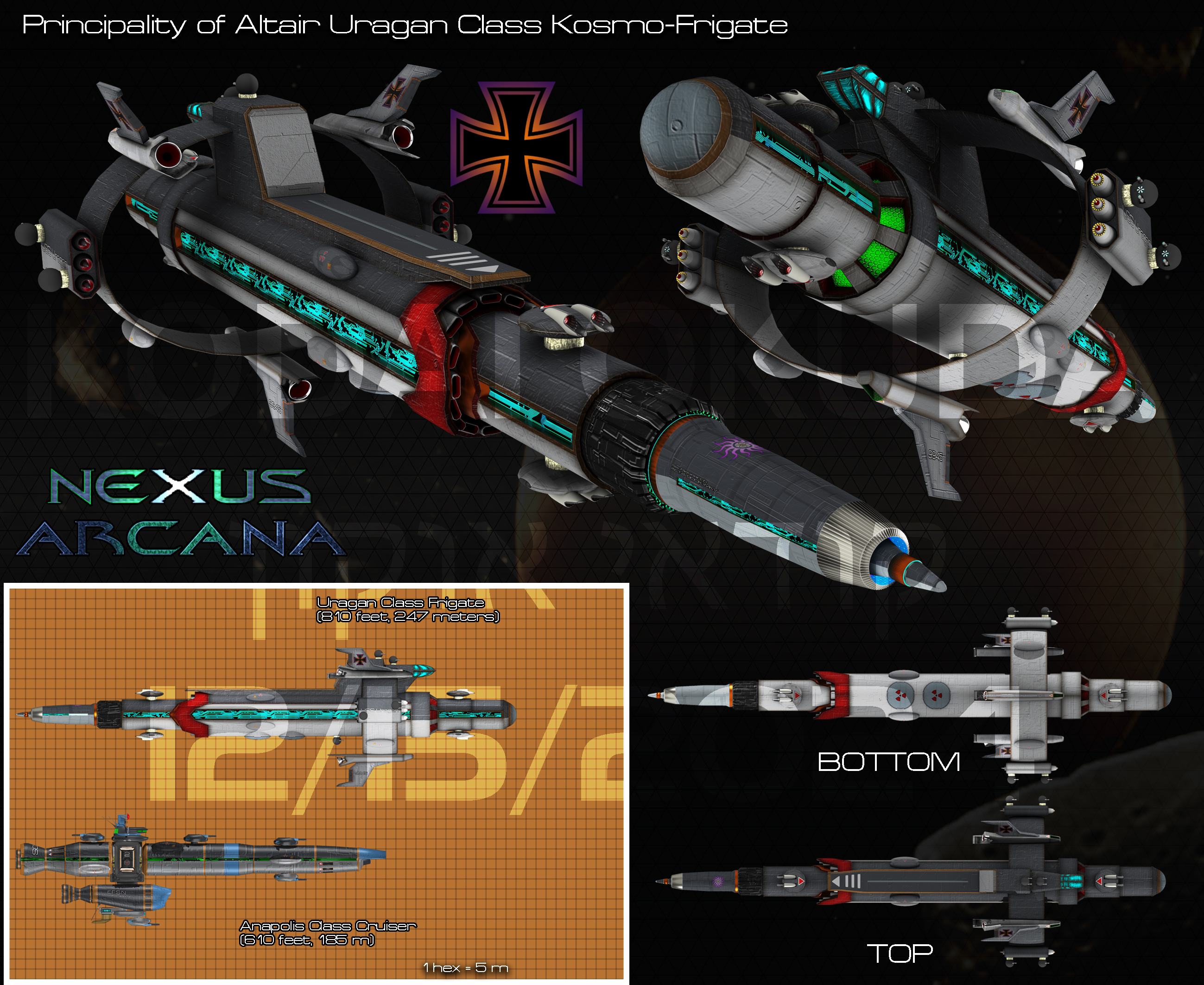 The Uragan is a minor refit of the Falke class that added the new Altair Engineering AE-G1-500 1st Generation Super Luminal Velocity drive. This new drive increased the Space-Time Dilation of the vessel considerably.