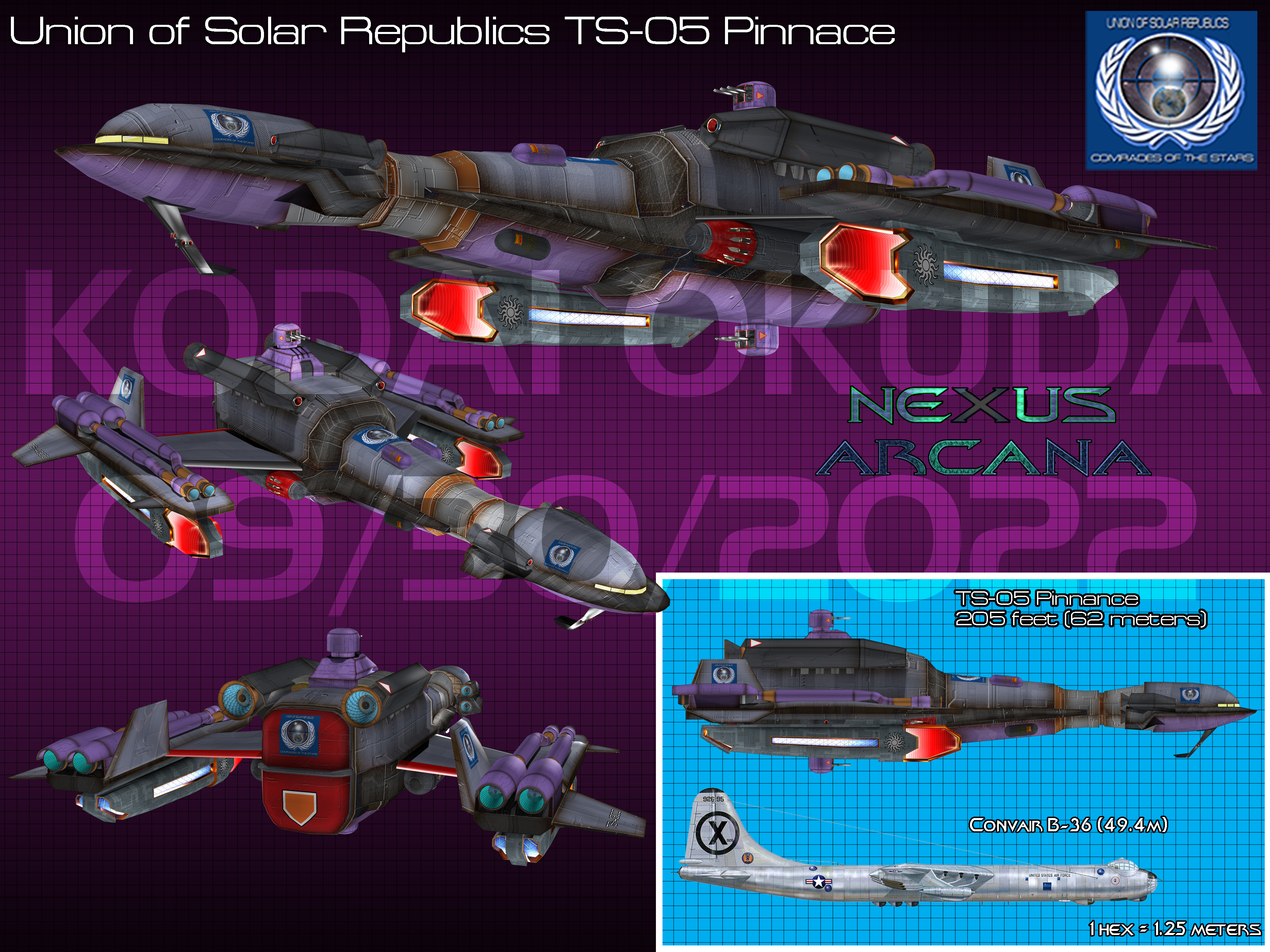 As the 1st Interplanetary War raged on to its conclusion the newly formed Union of Solar Republics had control of the various manufacturing facilities of the UN Solar Empire at Jupiter. The Jupiter shipyards were primarily the ones which produced the assault shuttles and Byzantine class of spacecraft. As part of their agreements with the Jovian Defense Forces and Neo-Hebrews of Saturn, the USR dismantled and transported a selected number of these shipyards to Alpha Centauri starting in 2178. The main reason being that they wanted to build their colonies, defense forces, and exploration space fleet as quickly as possible with craft that the bulk of their fledgling space navy forces would know how to operate. The result was that craft like the TS-04 were produced in 2176 both at Jupiter even as the facilities were being taken apart and then transported to Alpha Centauri where they were reassembled. By 2179 multiple assault shuttle factories were up and running and by 2179 the first TS-05 transport shuttles were rolling off the assembly lines.